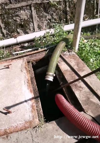 3.安排施工车辆(抽粪吸污车)进场,清理人员待车停好后,把抽粪车胶管(5米长)放入化粪池污水池内。清理施工人员不要随便下池,防止沼气中毒。准备施工设备(如:漏瓢、叉子、竹竿、铁钩)